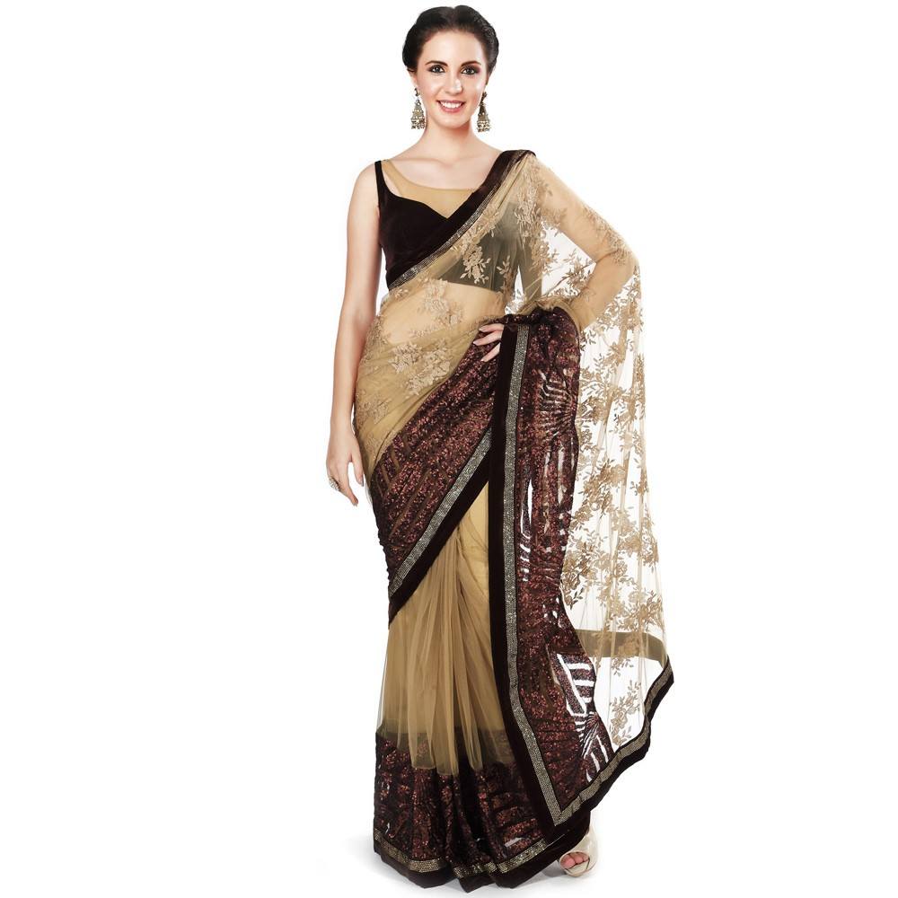 Tradycyjna indyjska suknia ślubna w bardzo cenionych kolorach bogatego brązu. Zachęcamy do zakupu tego unikatu.